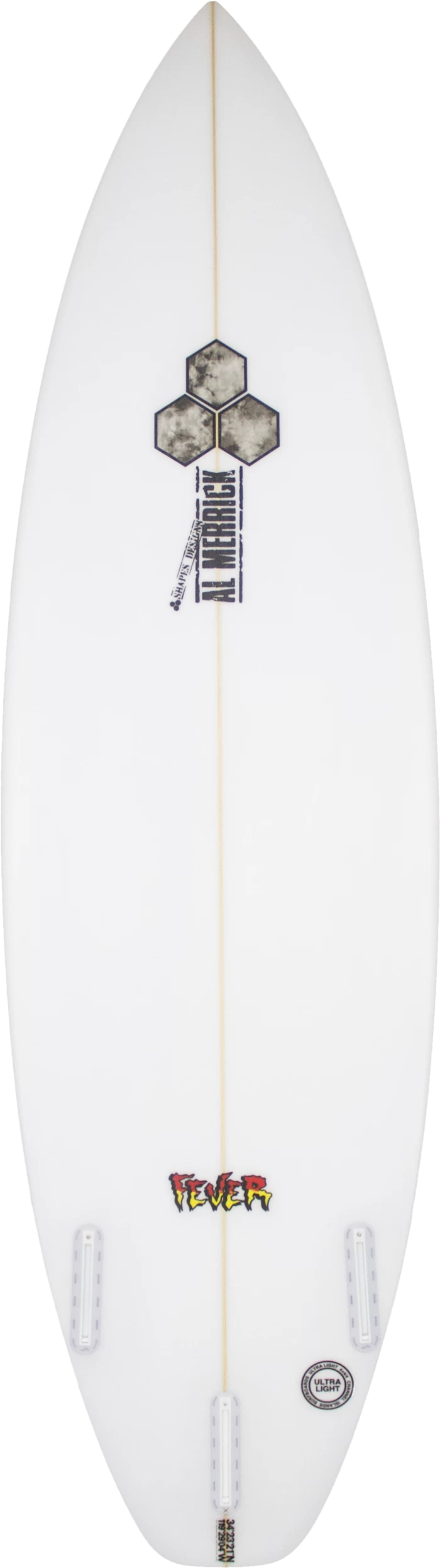 Design in the words of the shaper, Mike Andrews: “FEVER”. The fever has its roots in Al’s trusted and proven high-performance shortboard series. What we did is we looked at some parts of a few different models Pat loves, including the Rookie/Remix/Mbm and the Proton. From the Rookie, we stole the “engine room” i.e., the entry rocker and the rail rocker leading into the fins, but lowered the overall rocker. We also used the slightly shallower concave found on Al’s Remix, compared to the Rookie, helping it be more adaptable in less than perfect waves. From the MBM we took Al’s hip squash, which gives great pivot off the bottom and awesome release in the lip. We then gave it a slightly wider nose and tail than the Rookie, which makes the outline a lil more parallel like the Proton, this produces more drive…and there you have it, Pat’s Fever. Still a very high-performance board but one that’s a bit more of an all-rounder and very versatile in a wider range of conditions which is exactly what Pat was searching for!