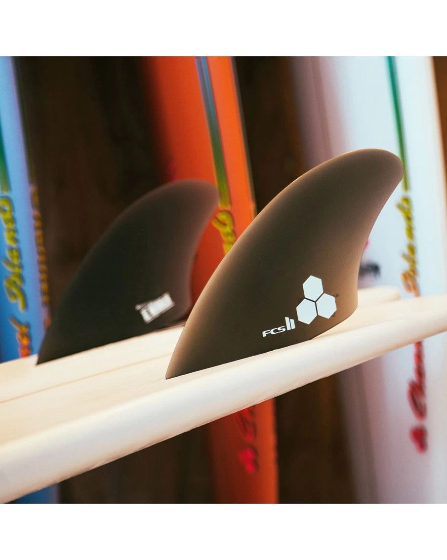 Performance Glass (PG) fins are machine cut from layers of solid fiberglass. These fins are stiff, and are widely used by pro level surfers because the integrity of the flex is maintained under immense force, and in the most extreme of conditions and situations.