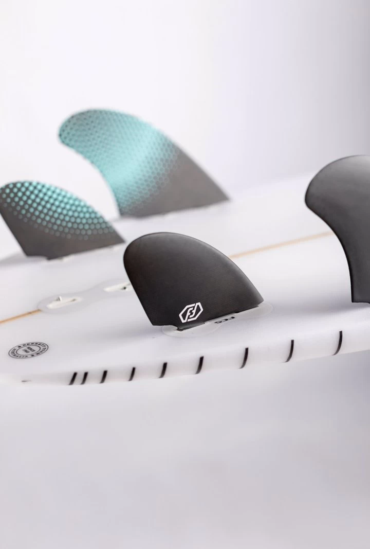FCS compatible. This Quad Model is based on Keel Twin template. The two keels have converted it into four fins by extracting area from the back of the keel and re-designed it into a small trailer fin. This Semi Keel and two stabiliser offers the flow of a traditional twin fish with the control of a performance Quad Setup. The trailer has a low profile but is robust, while the side fins retain the look of a traditional keel with a narrower profile. Overall, this high-area quad set has soft, smooth curves that directly translate to how it feels in the water.