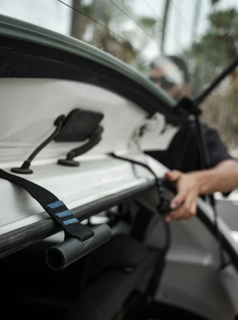 The Devoted Premium Three-Door Soft Roof Rack is especially designed for three-door hatchbacks (2 doors and 1 trunk). This through-the-door style soft rack solution provides a means of transporting surfboards on vehicles lacking a roof rack, roof bars or five doors.