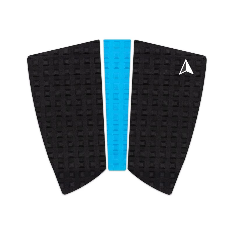 The 2+1 is our super versatile Fish pad. The shape suits any Fish with a deep swallow tail – use it as a 2 piece pad for a medium wide tailed fish, or use the wedge centre piece in either 180° position for a wide or extra wide tail. The pad is flat with no arch, our lowest kick tail and square grooving designed for easy movement and repositioning of the back foot for front foot fish surfing, but plenty of grip when you lean into a turn and push hard through the tail.