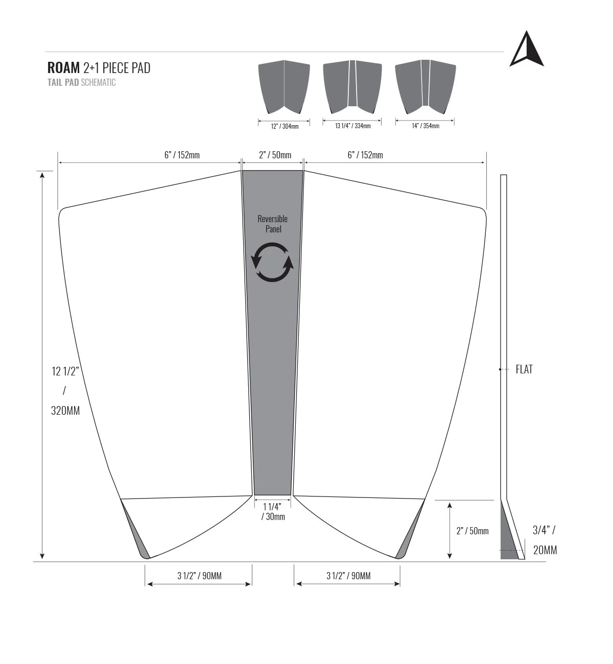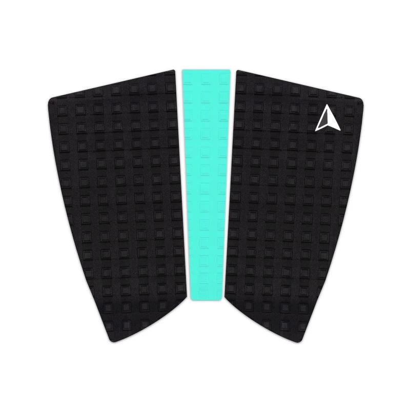 The 2+1 is our super versatile Fish pad. The shape suits any Fish with a deep swallow tail – use it as a 2 piece pad for a medium wide tailed fish, or use the wedge centre piece in either 180° position for a wide or extra wide tail. The pad is flat with no arch, our lowest kick tail and square grooving designed for easy movement and repositioning of the back foot for front foot fish surfing, but plenty of grip when you lean into a turn and push hard through the tail.