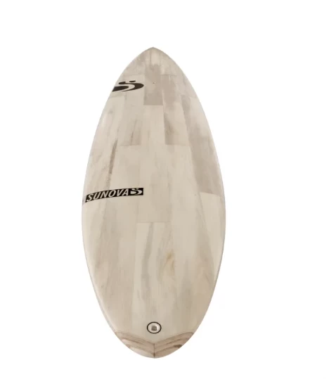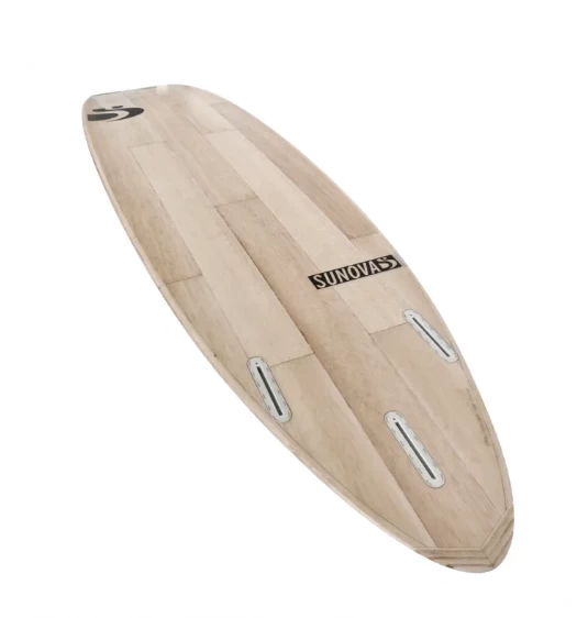 Flat bottom. The idea is to keep the board going fast, it already has plenty of features to keep the board loose and sensitive, no need for added contours as the overall design is not dependent on bottom contours for control. Additionally the general Sunova construction with the flexible bottom adds another dimension that reduces the need for contours.