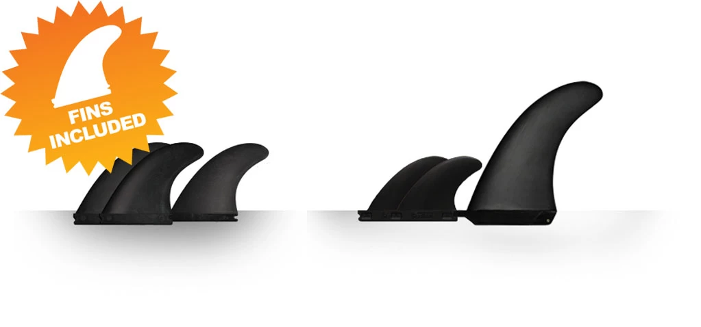 Torq TET-CS surfboards all come with fins. The Longboards come with a 2+1 set up, offering all round performance with the option of single fin only.