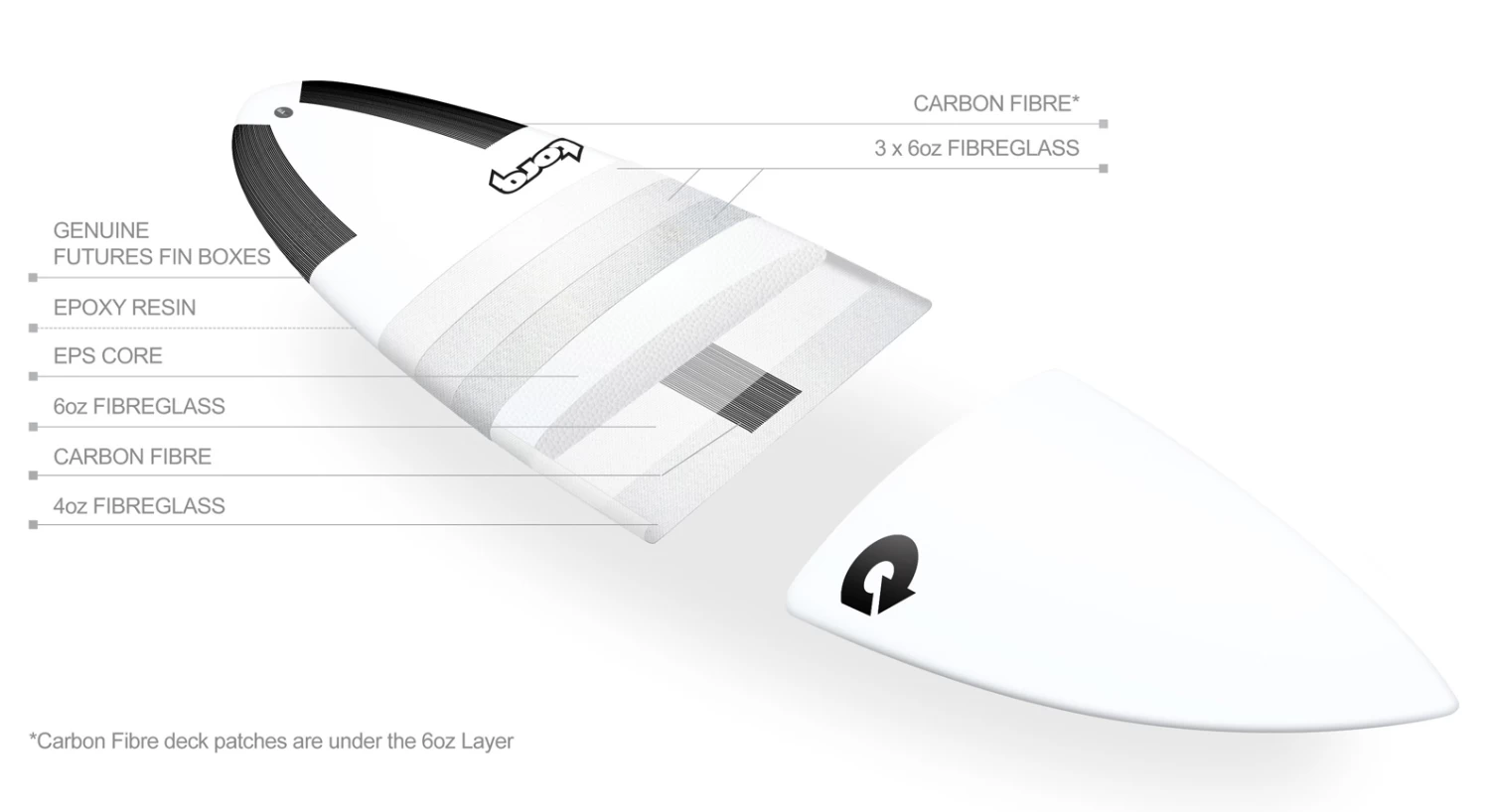 In the back 3rd, the template narrows into a pulled in round tail with a double concave vee in the bottom and a medium tail flip. Designed for maneuverability, this tail allows the board to come hard off the bottom into the lip or carve a long arc back into the pocket.