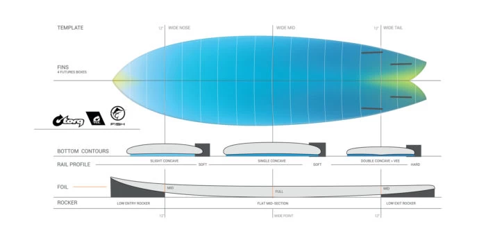 Designed for drawing long arcs on clean waves the Fish’s width and volume also makes it a great choice for more intermediate surfers looking for a shorter board. It’s equally at home in average surf, where the large planning area delivers performance in weaker waves.