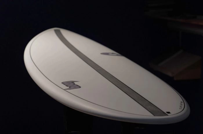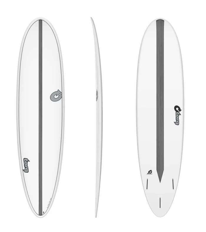 TET Carbon Strip Epoxy Construction: The Torq TET-CS, or Carbon Strip, utilizes the same advanced TET process but with a performance-oriented lay-up. The deck has a lighter weight glassing schedule but an additional impact mesh deck patch designed to spread the force of impact to reduce dings. The Mod Fish shapes feature a UD Carbon Strip on the base for strength but allowing additional flex. On the Funboard and Longboards, the deck also features a UD Carbon Strip for additional strength. The result: less weight, same strength, and a killer new look.