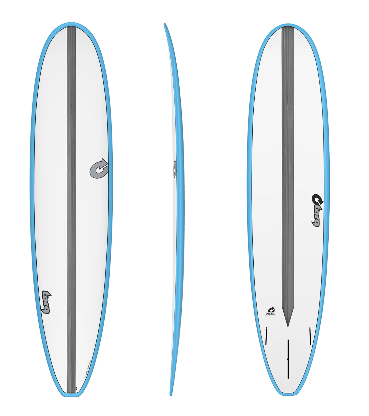 TET Carbon Strip Epoxy Construction: The Torq TET-CS, or Carbon Strip, utilizes the same advanced TET process but with a performance-oriented lay-up. The deck has a lighter weight glassing schedule but an additional impact mesh deck patch designed to spread the force of impact to reduce dings. The Mod Fish shapes feature a UD Carbon Strip on the base for strength but allowing additional flex. On the Funboard and Longboards, the deck also features a UD Carbon Strip for additional strength. The result: less weight, same strength, and a killer new look.