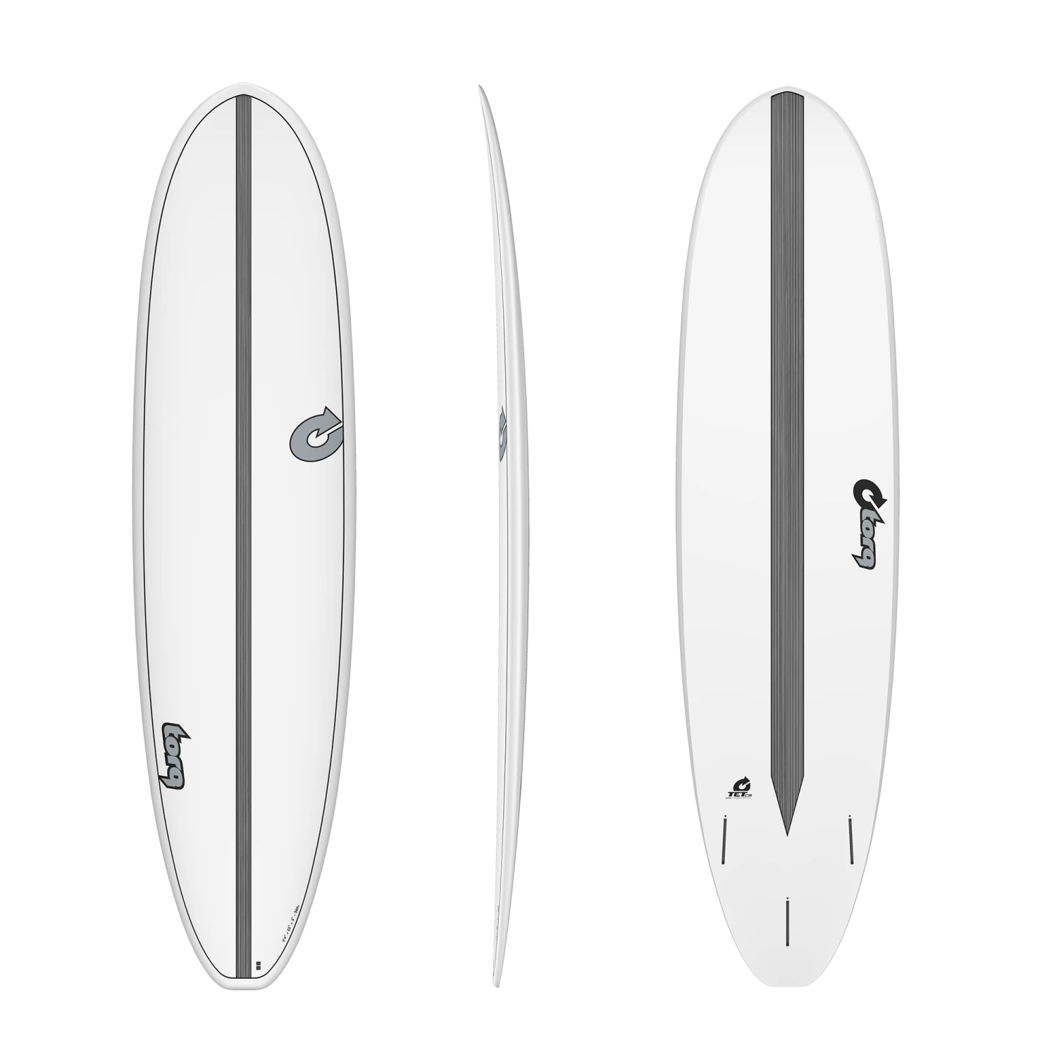 Fins: Torq TET surfboards all come with fins. The ModFish comes with 5 fin boxes for either Quad or Thruster set up and supplied with a Thruster fin set as standard. The ModFun and Mini-Long shapes come with 3 fin boxes and a Thruster fin set offering an even balance of drive and release for all round surfing. The Torq Longboard comes with a 2+1 set up, offering all round performance with the option of single fin only.TET Carbon Strip Epoxy Construction: The Torq TET-CS, or Carbon Strip, utilizes the same advanced TET process but with a performance-oriented lay-up. The deck has a lighter weight glassing schedule but an additional impact mesh deck patch designed to spread the force of impact to reduce dings. The Mod Fish shapes feature a UD Carbon Strip on the base for strength but allowing additional flex. On the Funboard and Longboards, the deck also features a UD Carbon Strip for additional strength. The result: less weight, same strength, and a killer new look.