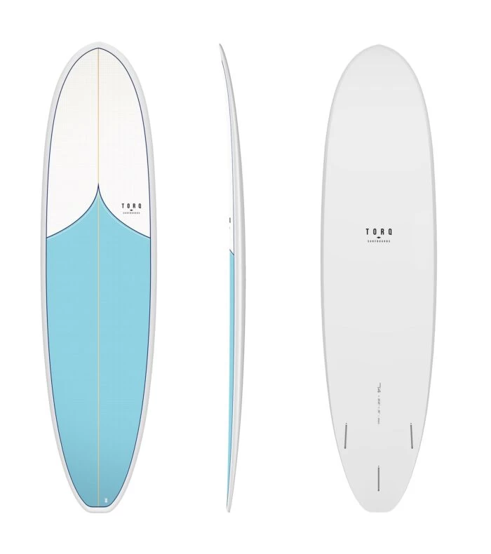 Torq TET V+ Blue / White Deck: The Volume Plus (V+) takes the trend for high volume wide surfboards into the Funboard model, creating a board with the stability and paddle ability of a much longer board, but in a compact, easier to turn package.
