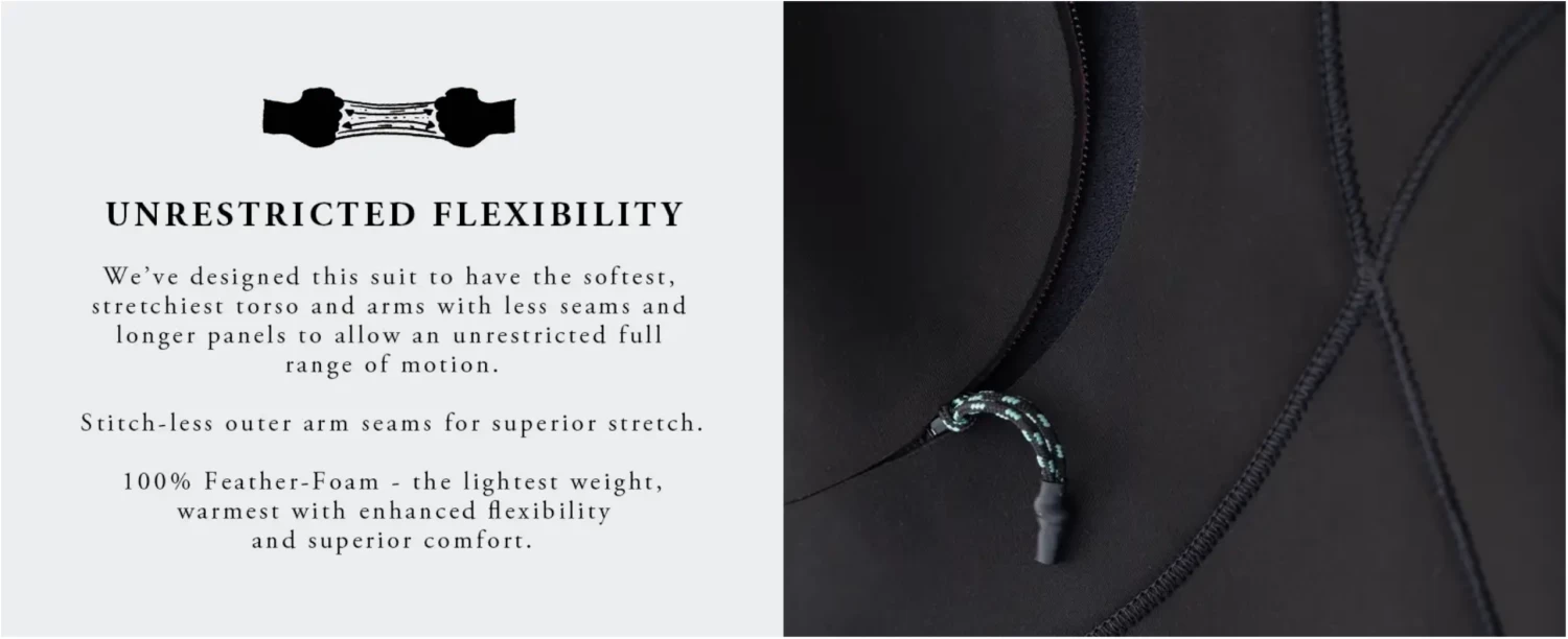 • Makes the suit easier to get on and off than any chest zip on the market.